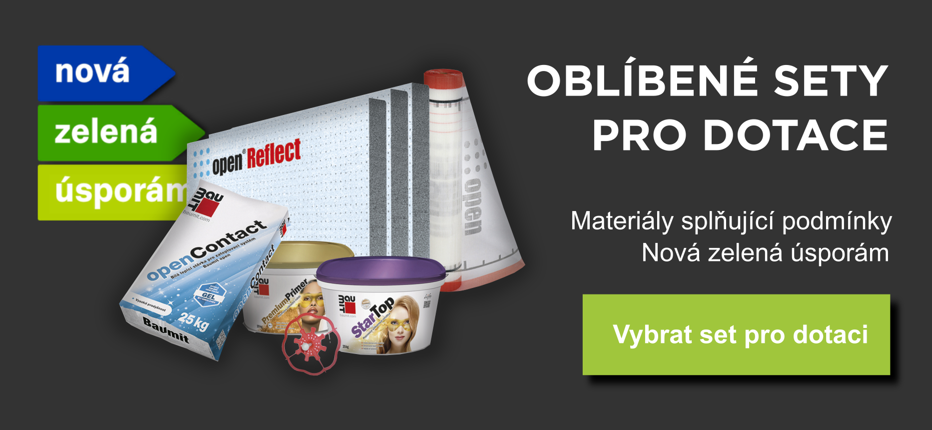 V nabídce fasádních zateplovacích systémů domů naleznete sestavy s klasickým bílým fasádním polystyrenem EPS 70F, o 20 % lépe izolujícím šedým fasádním polystyrenem, prodyšným a paropropustným fasádním polystyrenem, polystyrenem soklovým nebo fasádní minerální vatou vhodnou zejména na zateplení staveb z materiálu Ytong. Každý systém pro zateplení fasády má přesně nadefinované lepící a stěrkové hmoty, které slouží jak k nalepení tepelné izolace, tak k vytvoření armovací výztužné vrstvy kontaktního zateplovacího systému fasád.